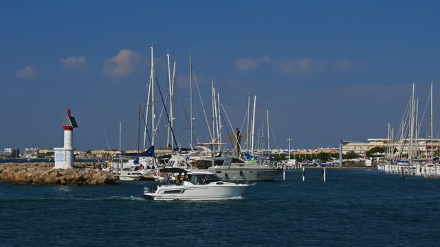 En 1963, la CCI de Nîmes, avec le concours de Jean Bastide lance le projet de construction d'un nouveau port de plaisance sur le littoral languedocien, dans le cadre de la mission Racine. L'architecte retenu est Jean Balladur, qui a également dessiné les plans de la Grande-Motte, avec les collaborateurs Denis Barthélemy et Paul Gineste. Sa construction débute en 1969 avec la création des bassins, quais et jetées. Puis les premières marinas sont construites. En 1974, la capitainerie apparaît. En 1980, la deuxième tranche de travaux concernant les marinas est lancée et en 1985 se termine le plan de construction initial de la CCI. Depuis, sous la pression du marché, l'urbanisme n'a cessé d'évoluer avec la construction de nombreuses marinas supplémentaires, d'appartements et de villas. Sa Régie a été présidée par Étienne Mourrut lorsqu'il était maire du Grau-du-Roi.